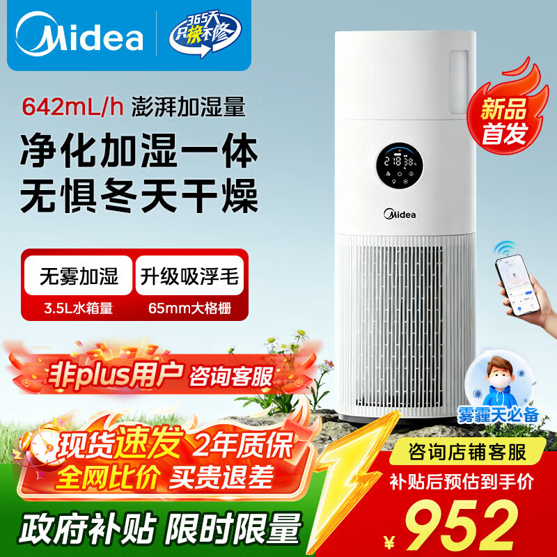 旗舰店美的R8空气净化器加湿一体机除甲醛烟味宠物吸猫毛母婴级家用卧室