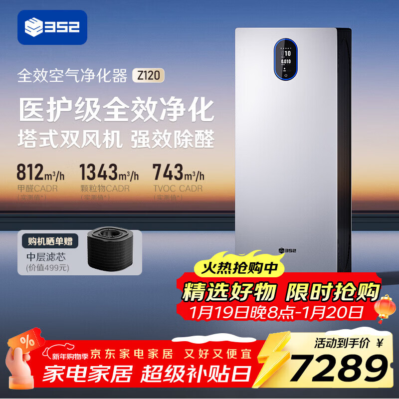 自营352空气净化器 除甲醛细菌流感病毒TVOC异味过敏原甲醛数显 新房家用塔式双风机Z120【家电国家补贴】
