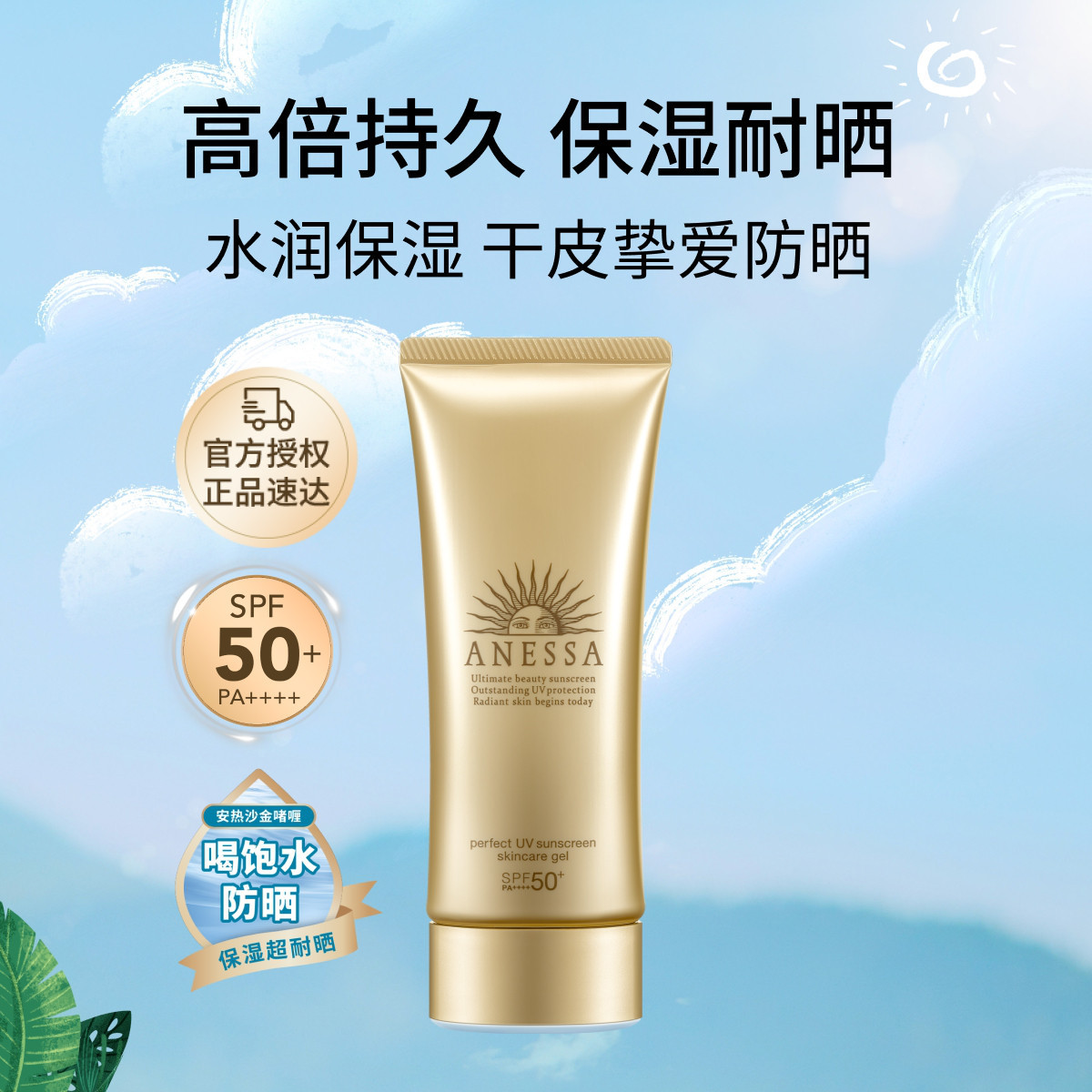 安热沙金灿倍护防晒啫喱90g高防晒SPF50+防水汗通勤便携