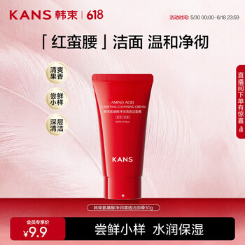 自营韩束红蛮腰氨基酸洁面膏30g 深层清洁控油保湿洗面奶男女旅行小样