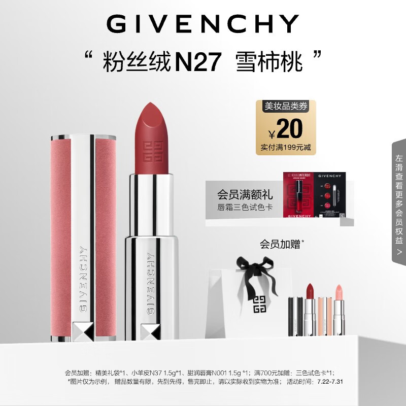 自营纪梵希(Givenchy)粉丝绒N27雪柿桃色口红唇膏 送闺蜜生日礼物送女生 化妆品