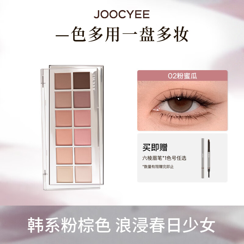 旗舰店酵色十二色眼影盘日常百搭通勤生日礼物送女生生日礼物 #02粉蜜瓜