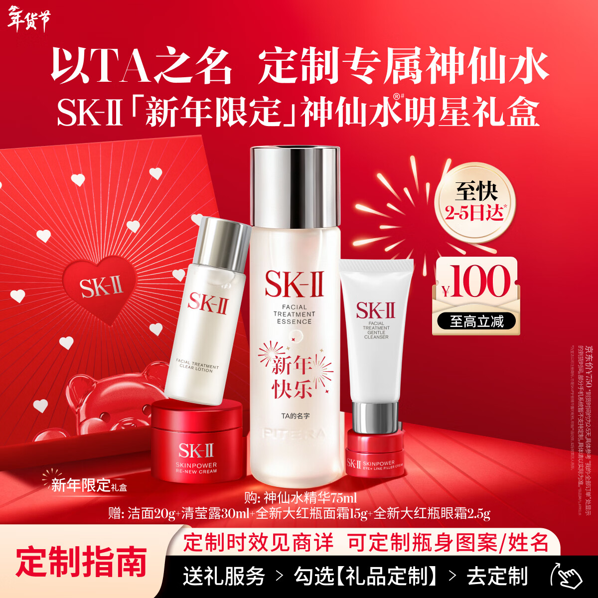 自营SK-II[定制礼物]神仙水精华75ml化妆护肤品套装水乳礼盒sk2新年生日女