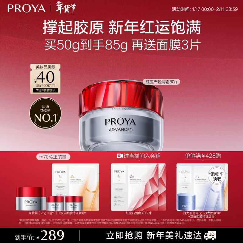 百亿补贴PROYA/珀莱雅红宝石精华2.0A醇保湿抗氧化初老面部提拉紧致