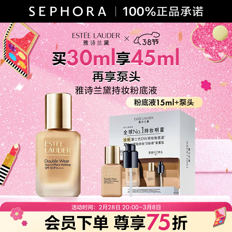旗舰店雅诗兰黛(Estee Lauder)轻透持妆粉底液 1W1,买30ml享45ml+泵头