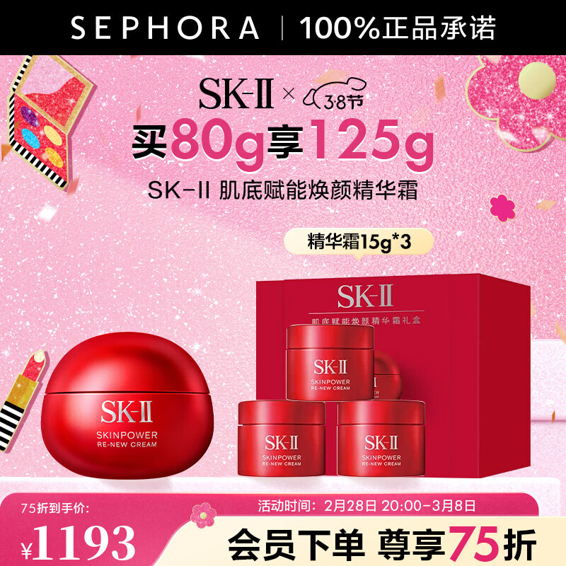 旗舰店SK-II肌底赋能焕颜精华霜 买80g享125g礼盒