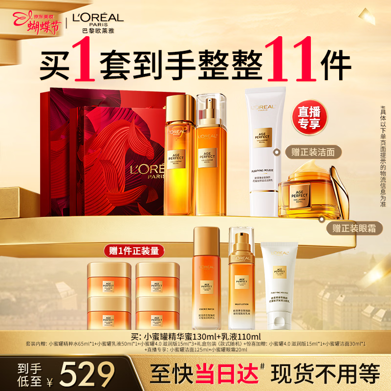 自营欧莱雅花蜜胶原小蜜罐水乳礼盒套装补水护肤品化妆品生日女神节礼物