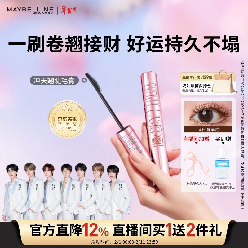 自营美宝莲冲天翘睫毛膏持妆卷翘纤长焦糖棕 新年礼物女