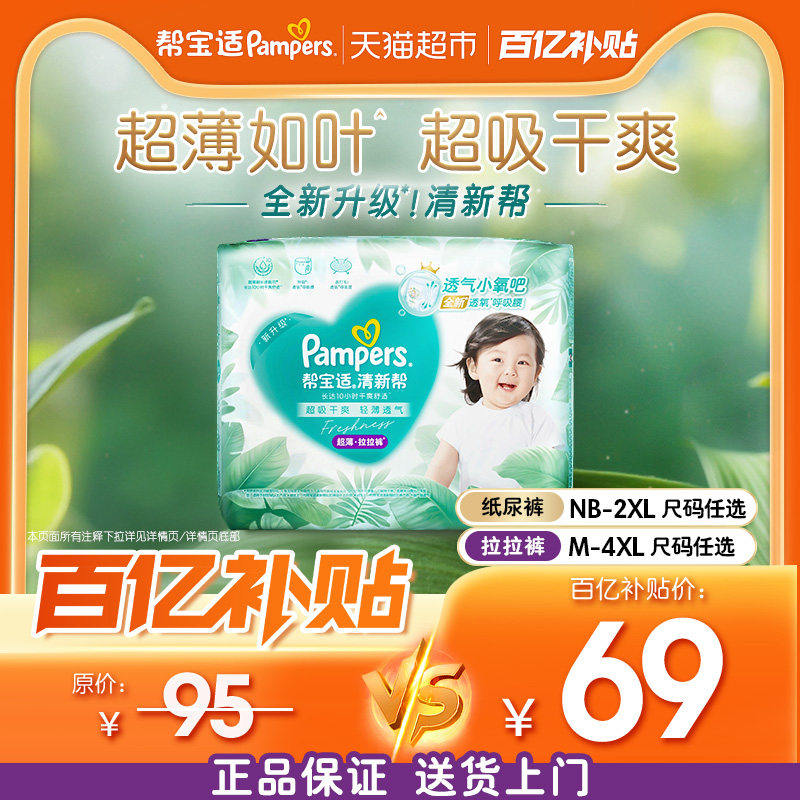 【超薄如叶】帮宝适新升级清新帮纸尿裤拉拉裤NB-4XL尿不湿尿裤