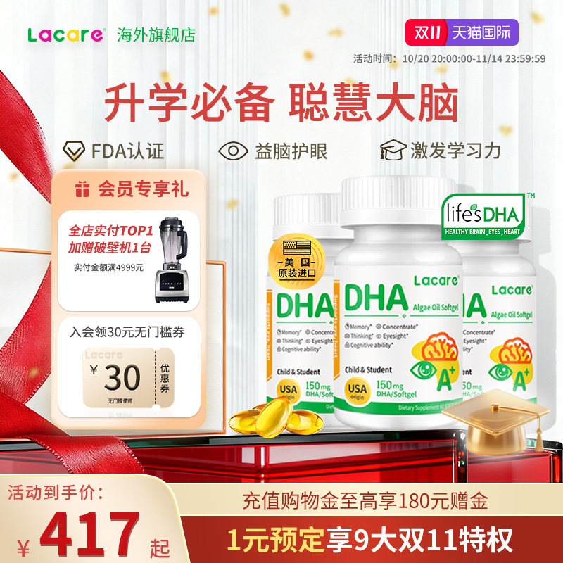 旗舰店【周期装】Lacare藻油DHA儿童升学备考学生青少年补脑记忆力临期