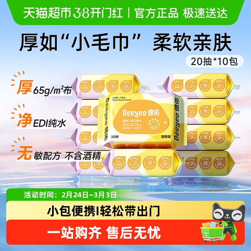 德佑婴儿湿巾新生儿宝宝手口专用湿纸巾儿童湿纸巾家用实惠装大包