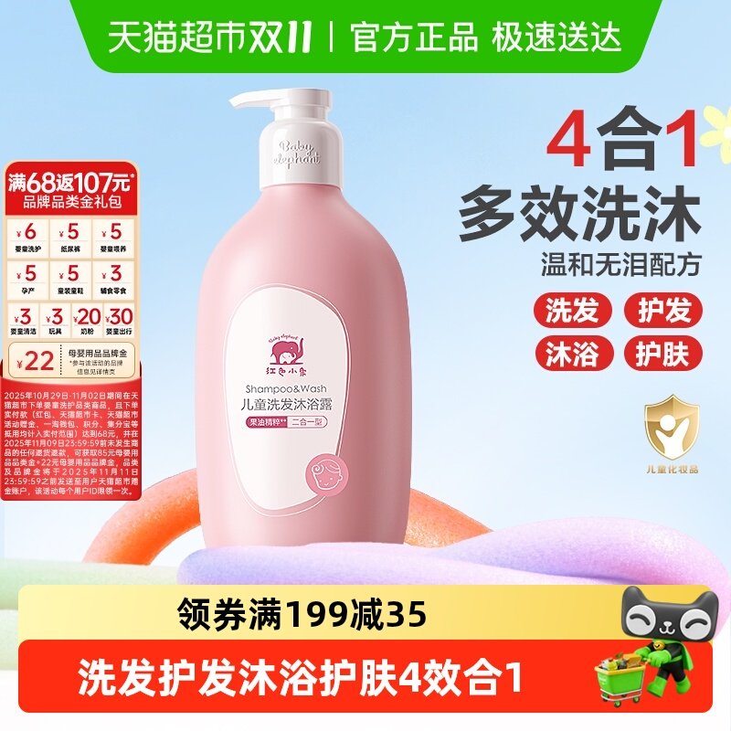 红色小象儿童沐浴露洗发水二合一婴儿沐浴宝宝洗护专用洗沐囤货装