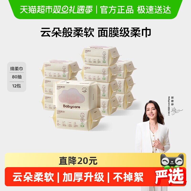 下拉领优惠】babycare小熊巾新生婴幼儿绵柔巾加厚面膜洗脸布纸巾