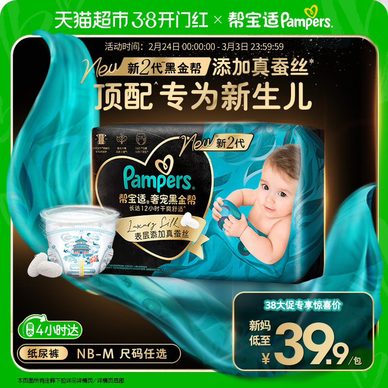 【新生儿顶配】体验装新帮宝适黑金帮纸尿裤NB-M添加真蚕丝尿不湿