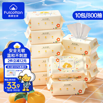 自营Fulcotton 棉柔世家 婴儿手口湿巾80抽*10包 新生儿加厚湿纸巾护肤柔湿巾纸