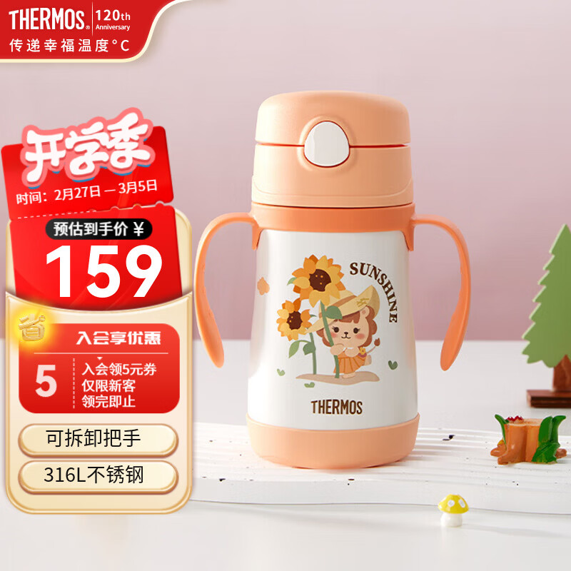 旗舰店膳魔师(THERMOS)儿童保温杯小容量吸管杯不锈钢把手畅吸杯幼儿园学生水杯 TCKC 橙色 吸管杯305ml(含备用吸管)
