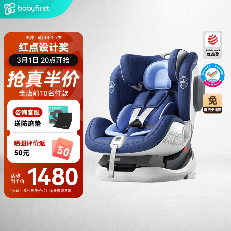 旗舰店宝贝第一(Babyfirst) 汽车儿童安全座椅灵犀 ISOFIX接口 0-4-7岁正反向安装 幻影蓝红点款