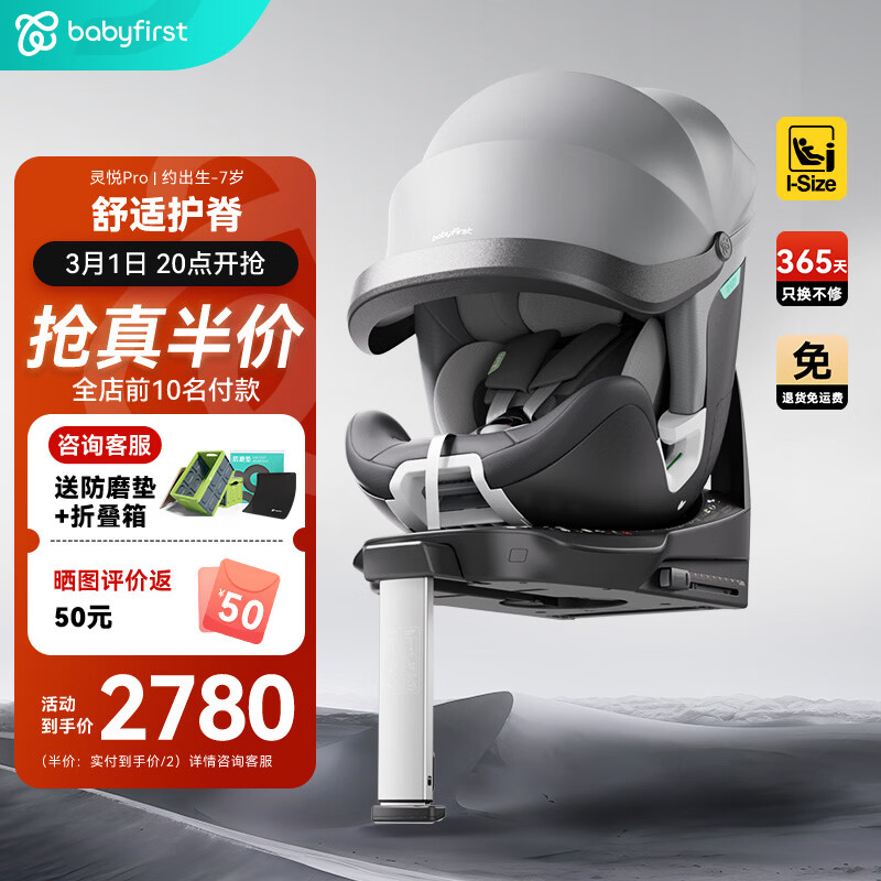 旗舰店Babyfirst宝贝第一灵悦Pro婴儿童安全座椅汽车0-7岁360旋转i-Size宝宝车载 智享版-极地灰
