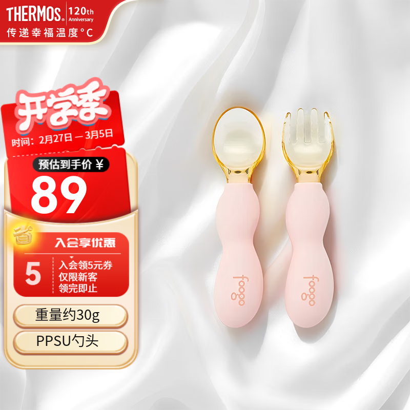 旗舰店膳魔师儿童餐具叉勺316L不锈钢叉子勺子套装宝宝辅食工具带收纳盒 TCAH 泡泡粉-PPSU叉勺套组(含收纳盒)