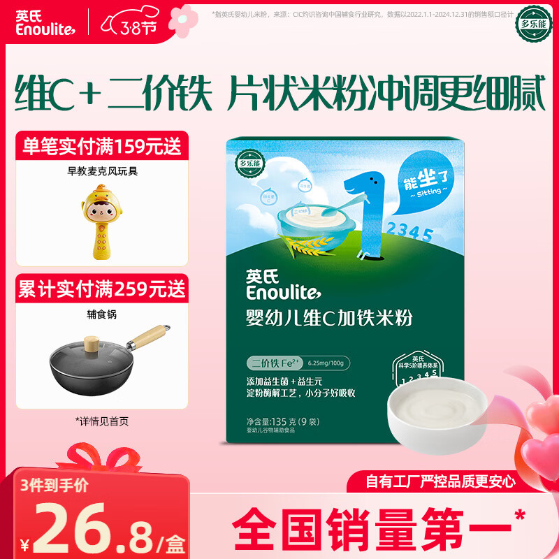 自营英氏婴幼儿米粉维C加铁营养米粉135g盒装宝宝辅食加铁婴儿米糊1阶6月+