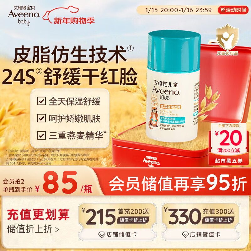 自营艾惟诺(Aveeno)艾维诺儿童面霜3-6-12岁 青少年专用秋冬滋润保湿补水面霜50g