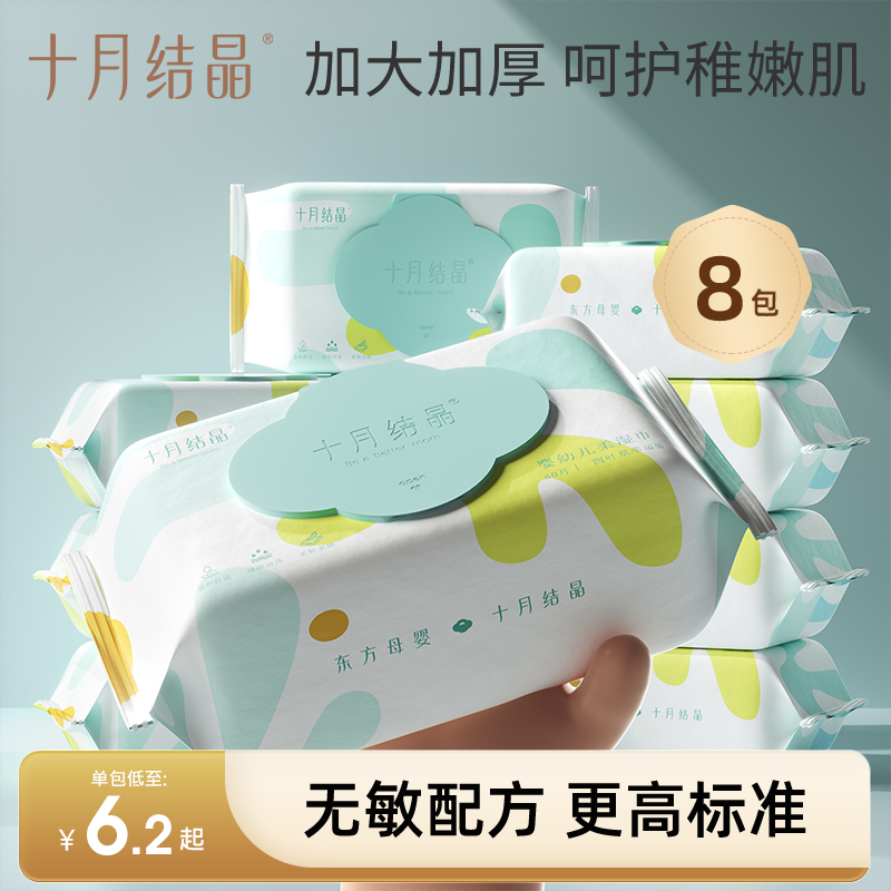 旗舰店十月结晶婴儿湿纸巾大包新生儿芦荟手口湿巾纸加厚湿纸巾80抽整箱