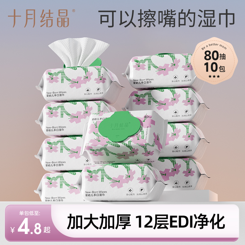 旗舰店超值购】十月结晶婴儿山茶油湿巾宝宝手口屁湿纸巾80抽家庭通用