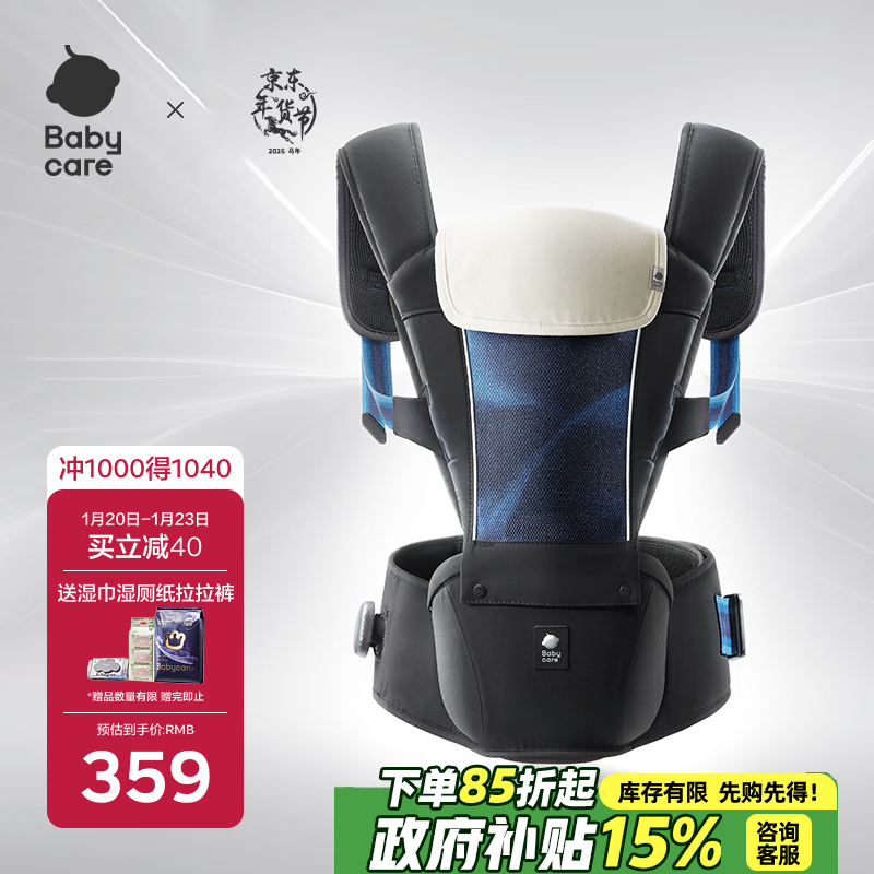 babycare腰凳婴儿背带宝宝外出前后抱娃神器Frap旋柄四季通用透气极地炫光