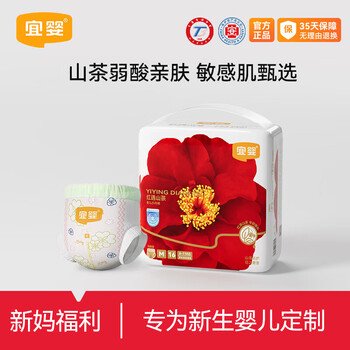 旗舰店宜婴弱酸红山茶花裤小内裤干爽透气拉拉裤新生儿尿不湿 拉拉裤M16片【Mini装】
