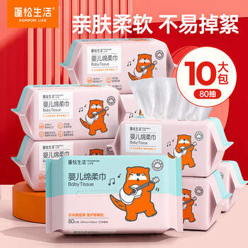 旗舰店蓬松生活 绵柔巾一次性洗脸巾加厚珍珠纹洁面巾干湿两用大包清洁柔巾 【双色款】大包80抽*10包