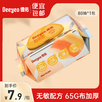 旗舰店德佑湿巾大包婴儿湿巾新生儿手口湿纸巾宝宝清洁成人可用湿巾纸 【尝鲜装】80抽*1包