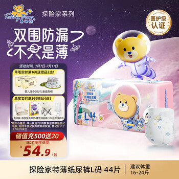 自营泰迪熊(Teddy Bear)探险家特薄纸尿裤L44片(9-14kg)婴儿宝宝尿不湿夏季超薄透气