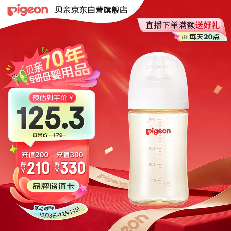 自营贝亲(Pigeon)PPSU宽口径防胀气奶瓶240ml M号奶嘴 3个月+ AA191