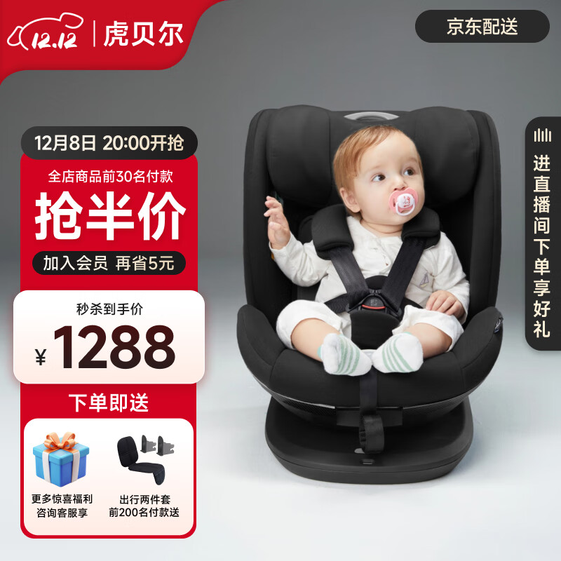 旗舰店虎贝尔HBR虎贝尔S360儿童安全座椅0-7-9岁车载isofix360度旋转婴儿宝宝 S360-黑色