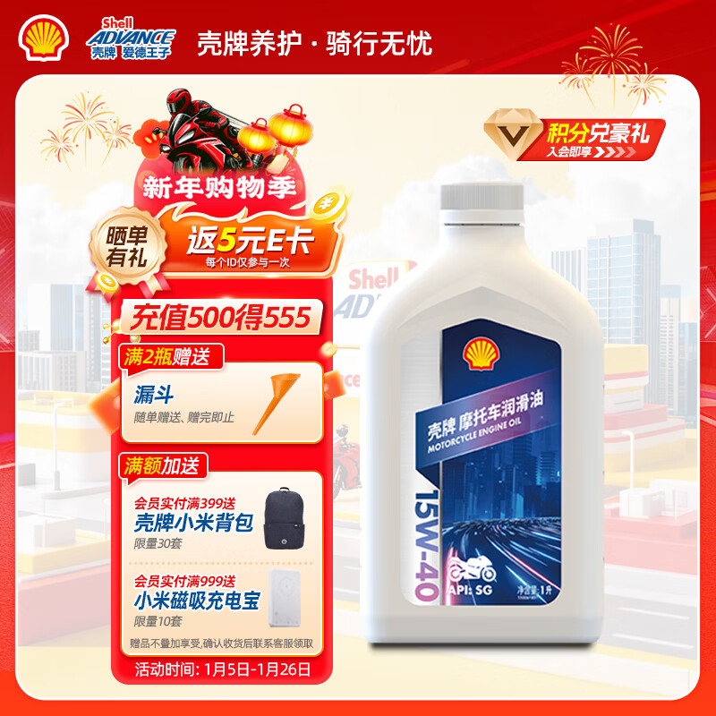 自营爱德王子壳牌摩托车机油摩托车润滑油15w-40 SG级 1L 白壳
