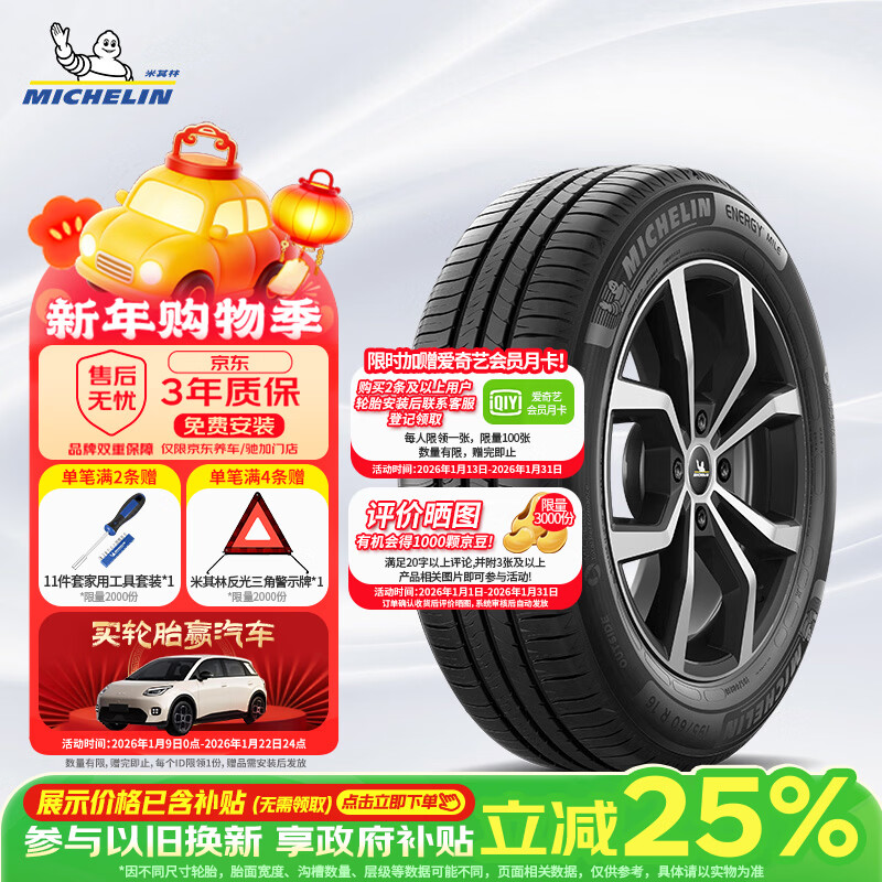 自营米其林(MICHELIN)汽车轮胎 195/65R15 91V 耐越 ENERGY MILE 适配卡罗拉/朗逸/雷凌