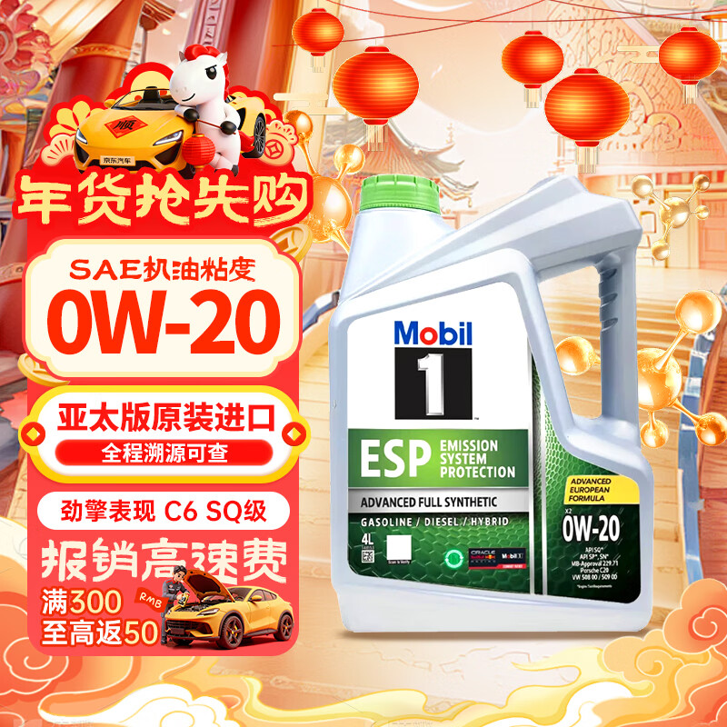 自营美孚(Mobil)1号 全合成机油 劲擎表现 ESP 0W-20 C6 SQ级 4L 新加坡原装进口