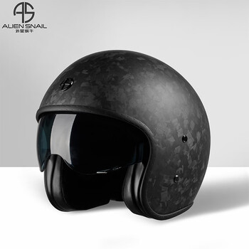 外星蜗牛复古头盔摩托车碳纤维3/4盔夏季机车男骑行女踏板巡航安全帽 锻造纹路-哑光 XL