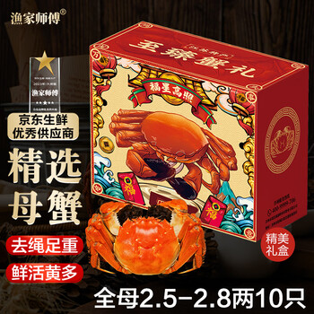 自营【活蟹】漁家师傅大闸蟹3.0-3.3两8只去绳足重鲜活螃蟹六月黄现货生鲜水产礼盒源头直发