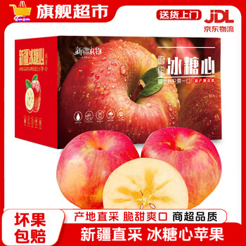 旗舰店新疆冰糖心苹果 新鲜水果丑苹果脆甜红富士苹果整箱 带箱9-10斤装 80-85mm 净重8.5斤