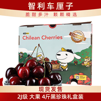 自营京鲜生 智利黑珍珠车厘子2J级4斤礼盒装果径约28-30mm 水果年货礼盒