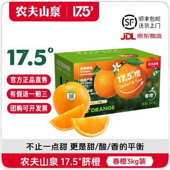 旗舰店农夫山泉官方旗舰 17.5°橙 春橙 当季鲜橙 新鲜水果 橙子礼盒 2025产季3kg装春橙