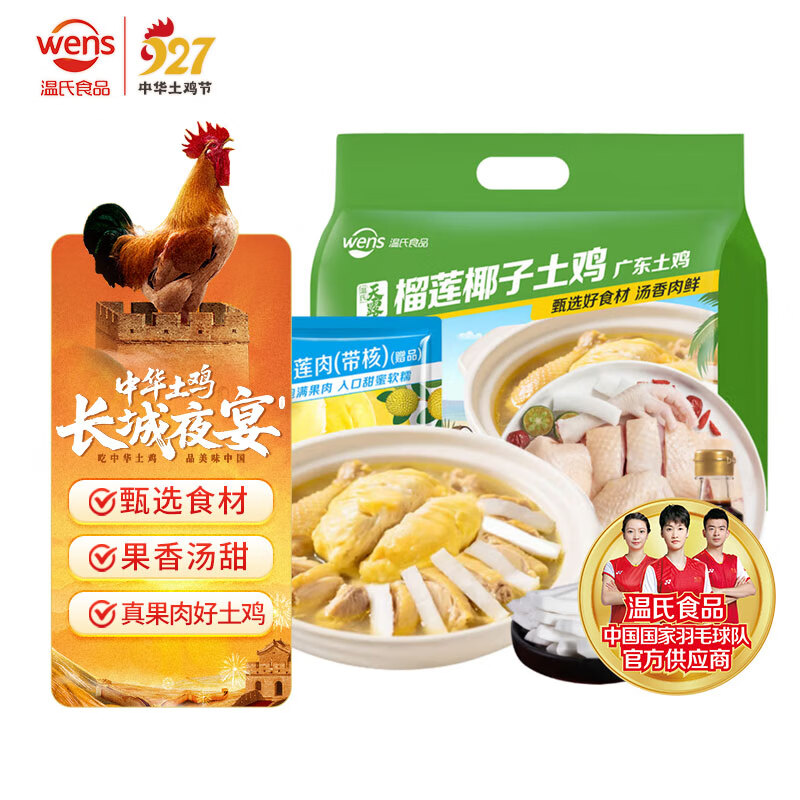 自营温氏 榴莲椰子鸡火锅套餐2-3份1.9斤 温氏x榴芒一刻 冷冻散养土鸡