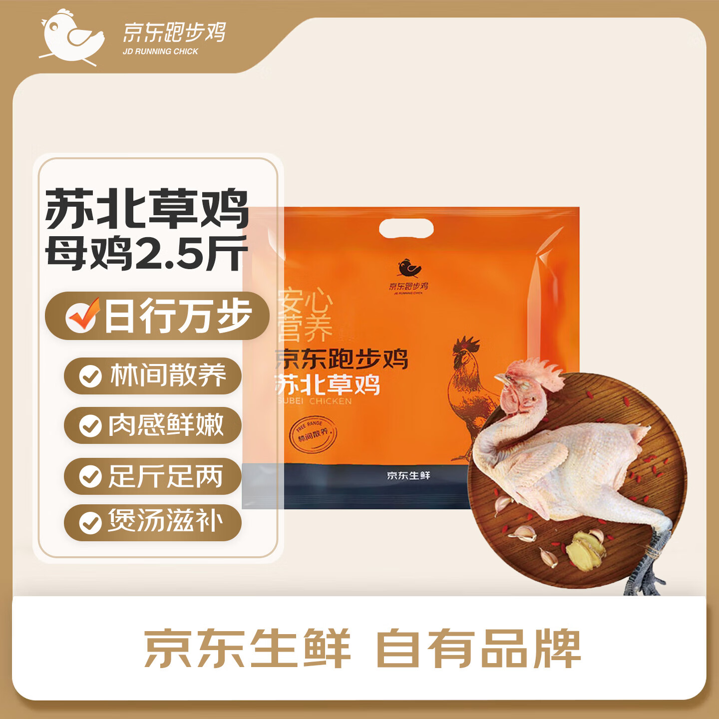 自营京东跑步鸡 苏北草鸡(母鸡)净重2.5斤 冷冻 160天林地散养草鸡春节也送货