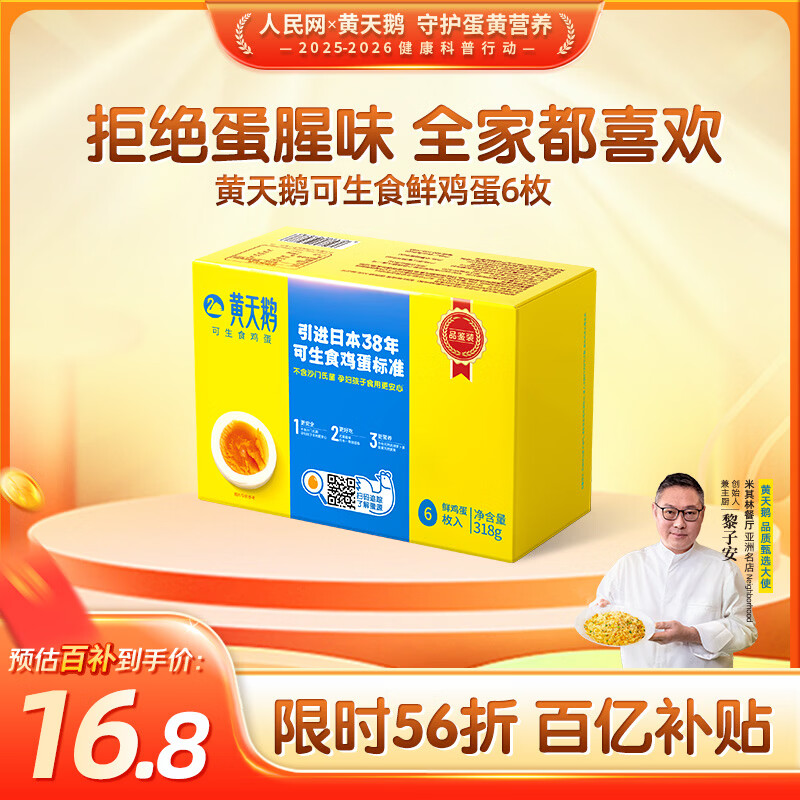 自营黄天鹅可生食鸡蛋 6枚单枚53g鲜鸡蛋礼盒装生鲜早餐源头直发送礼