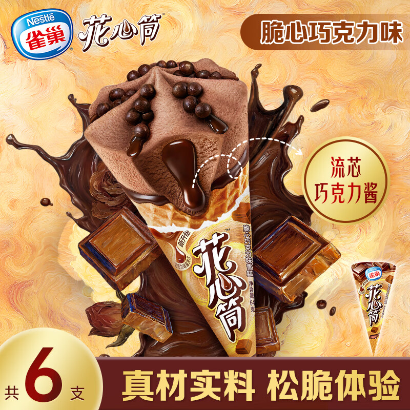 自营雀巢冰淇淋花心筒甜筒巧克力味64g*6支 生鲜冰激凌雪糕