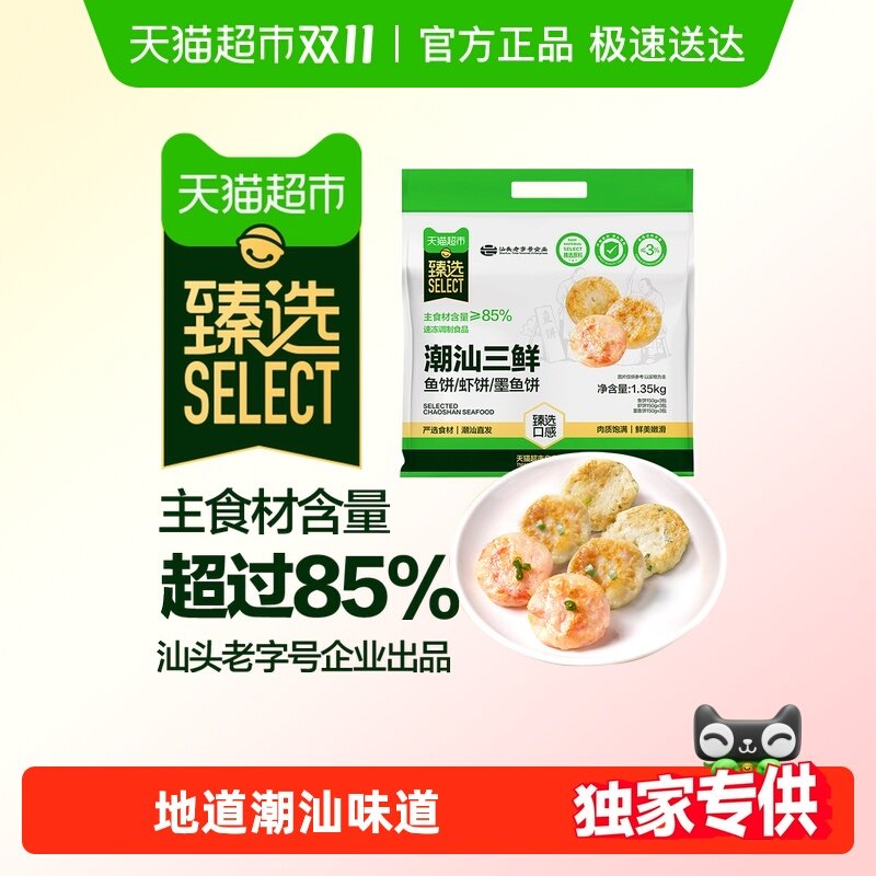 【臻选】潮汕鱼饼虾饼墨鱼饼组合火锅早餐食材1350g/内9小包