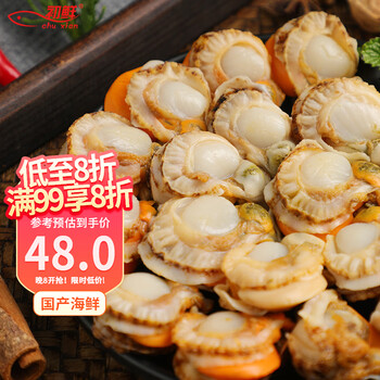 自营初鲜大号冷冻带黄扇贝肉2斤约80-120颗烧烤火锅食材海鲜水产端午聚餐