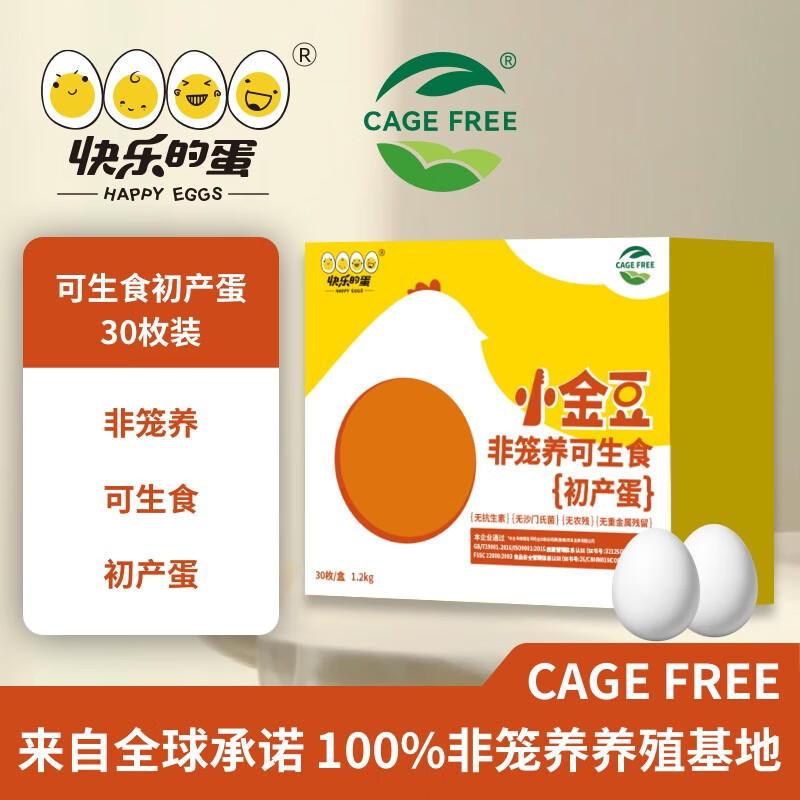 快乐的蛋小金豆初产蛋非笼养可生食鲜鸡蛋2.4斤(30枚)源头直发