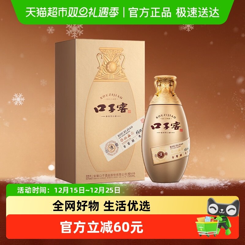口子窖古窖清礼盒50度500ml*2瓶+100ml*1瓶安徽白酒节日拜访送礼